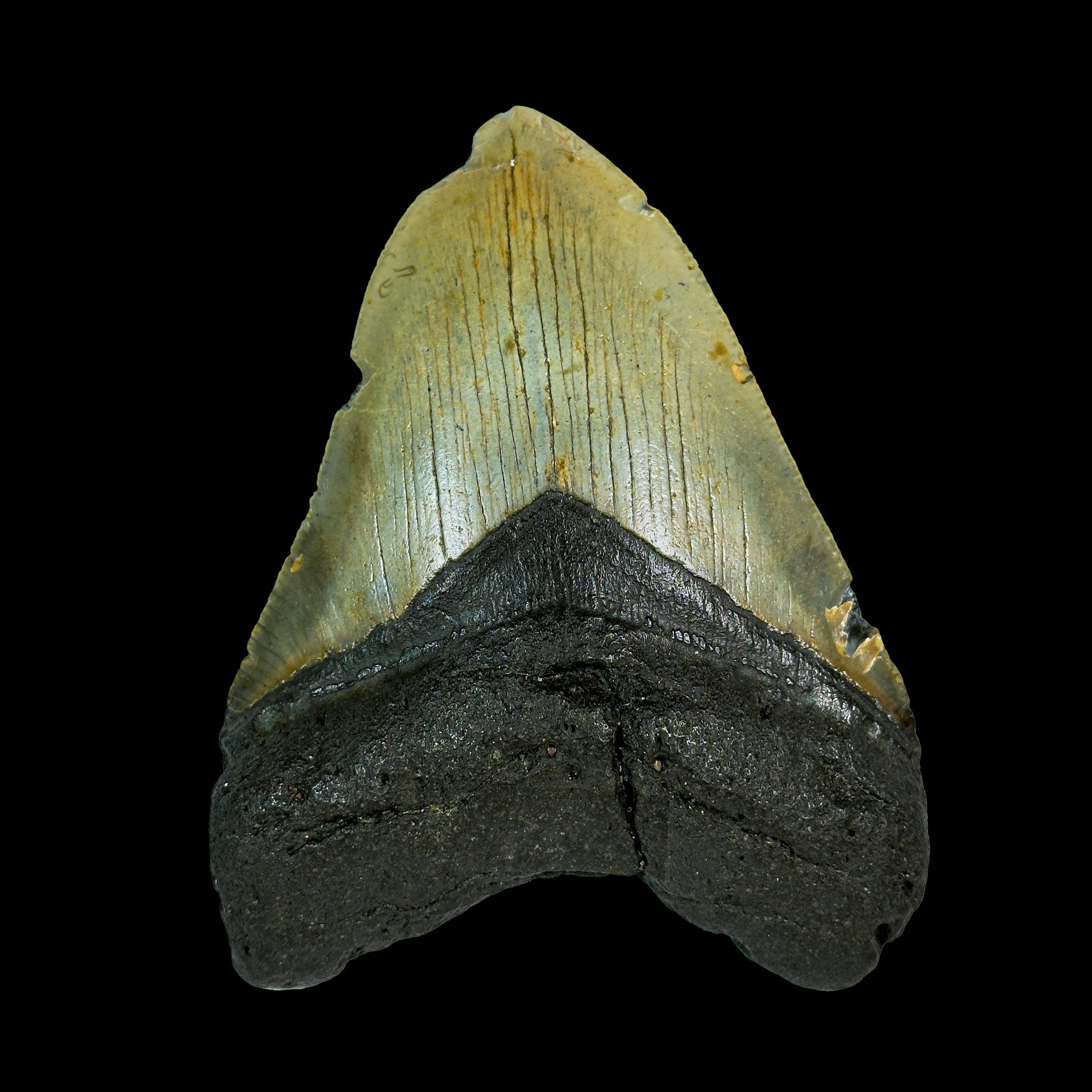 This Natural Megalodon Tooth Fossil displays a stunning blend of earthy black, deep grey, and natural mineralized enamel tones formed over millions of years through sedimentary fossilization processes. The preserved serration patterns, glossy enamel texture, and strong fossilized root structure highlight the authentic prehistoric formation, making each specimen completely unique and irreplaceable. The natural mineral coloration and fossil preservation create a dramatic and visually striking display piece, making it an exceptional addition to premium fossil collections, museum-style displays, and luxury natural history décor setups.