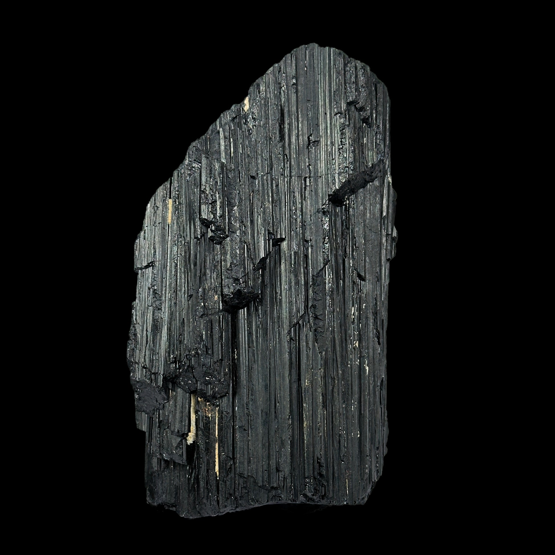 This specimen displays the classic and captivating jet-black color that makes Black Tourmaline globally admired. Its naturally formed vertical striations and rugged crystalline texture reflect raw geological artistry, showcasing subtle natural mineral inclusions that enhance its authenticity and uniqueness. The deep black tone symbolizes protection, strength, and mystery, while its matte to slightly glossy natural luster adds a premium aesthetic appeal. Each ridge and layer tells a story of natural formation over millions of years, ensuring that every piece remains completely unique and one-of-a-kind, making it a rare and valuable addition to any fine mineral or crystal collection.