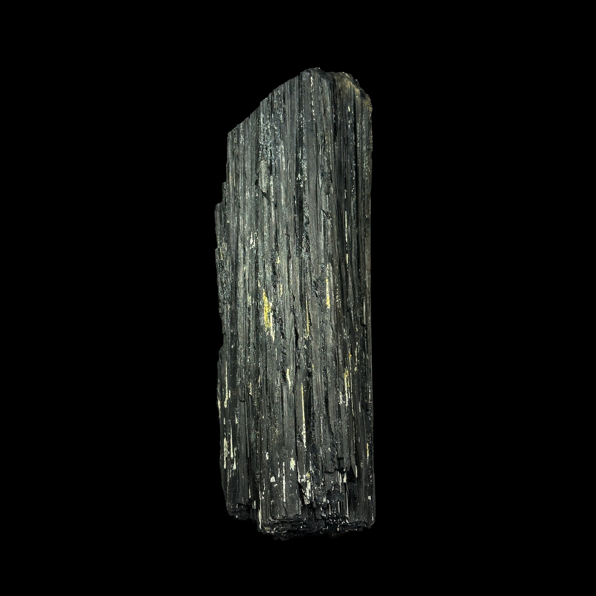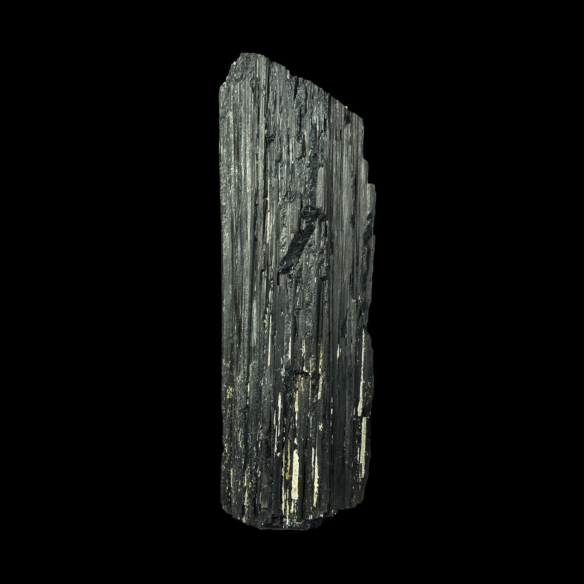 This specimen displays the classic and captivating jet-black color that makes Black Tourmaline globally admired. Its naturally formed vertical striations and rugged crystalline texture reflect raw geological artistry, showcasing subtle natural mineral inclusions that enhance its authenticity and uniqueness. The deep black tone symbolizes protection, strength, and mystery, while its matte to slightly glossy natural luster adds a premium aesthetic appeal. Each ridge and layer tells a story of natural formation over millions of years, ensuring that every piece remains completely unique and one-of-a-kind, making it a rare and valuable addition to any fine mineral or crystal collection.