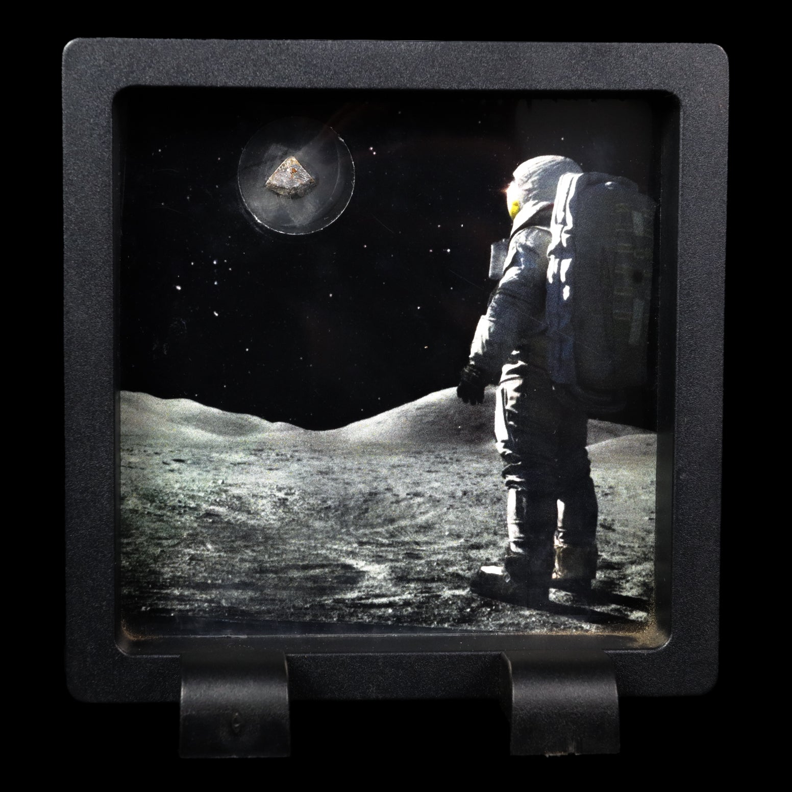 A genuine 0.55 ct Lunar Meteorite Chip, naturally ejected from the Moon’s surface through ancient asteroid impacts. This rare fragment traveled through space before landing on Earth. Verified by comparing its mineralogy, chemical composition, and isotopic structure with Apollo Mission lunar samples. Comes with a Certificate of Authenticity and a Moon information card. A perfect collector’s item, gift, or display piece.