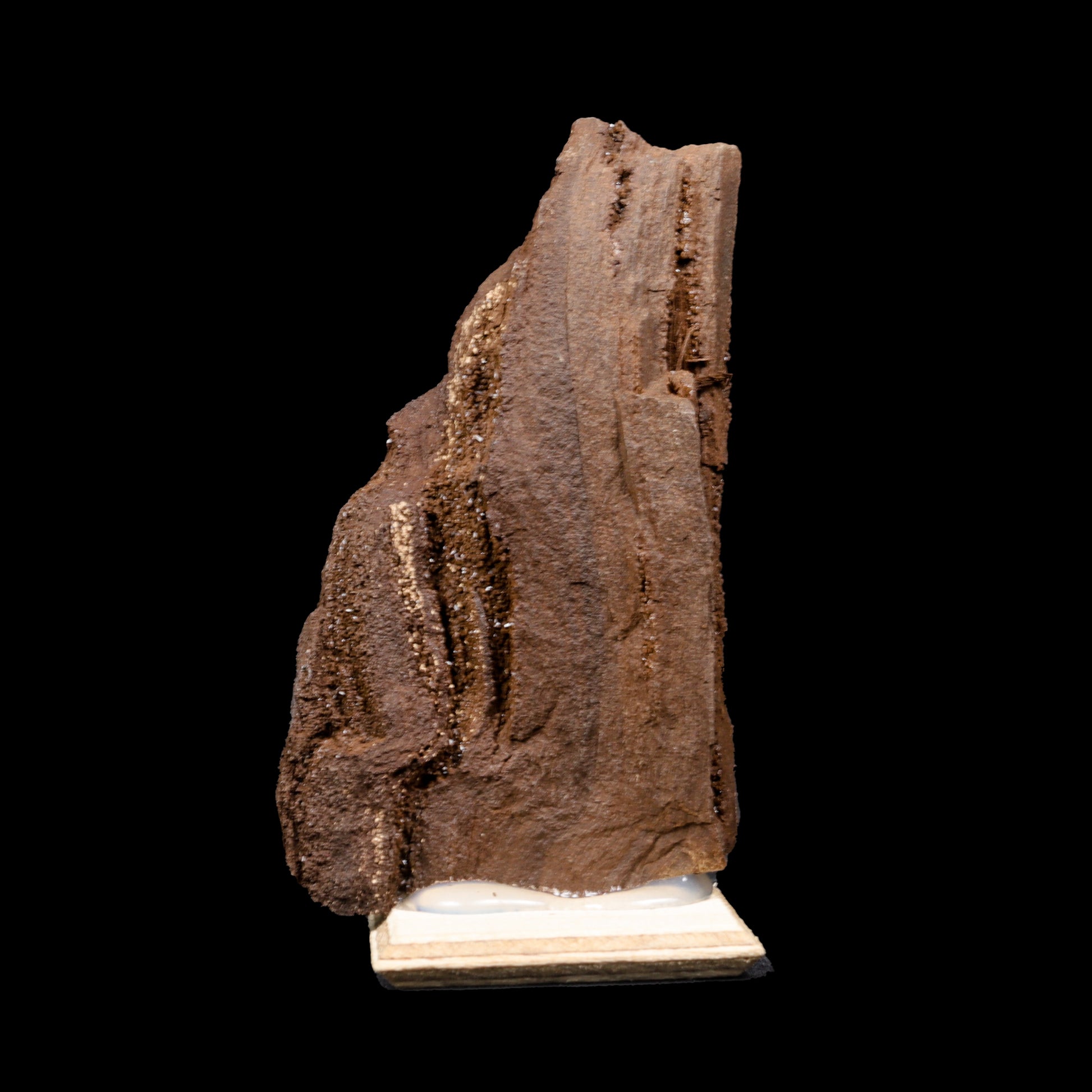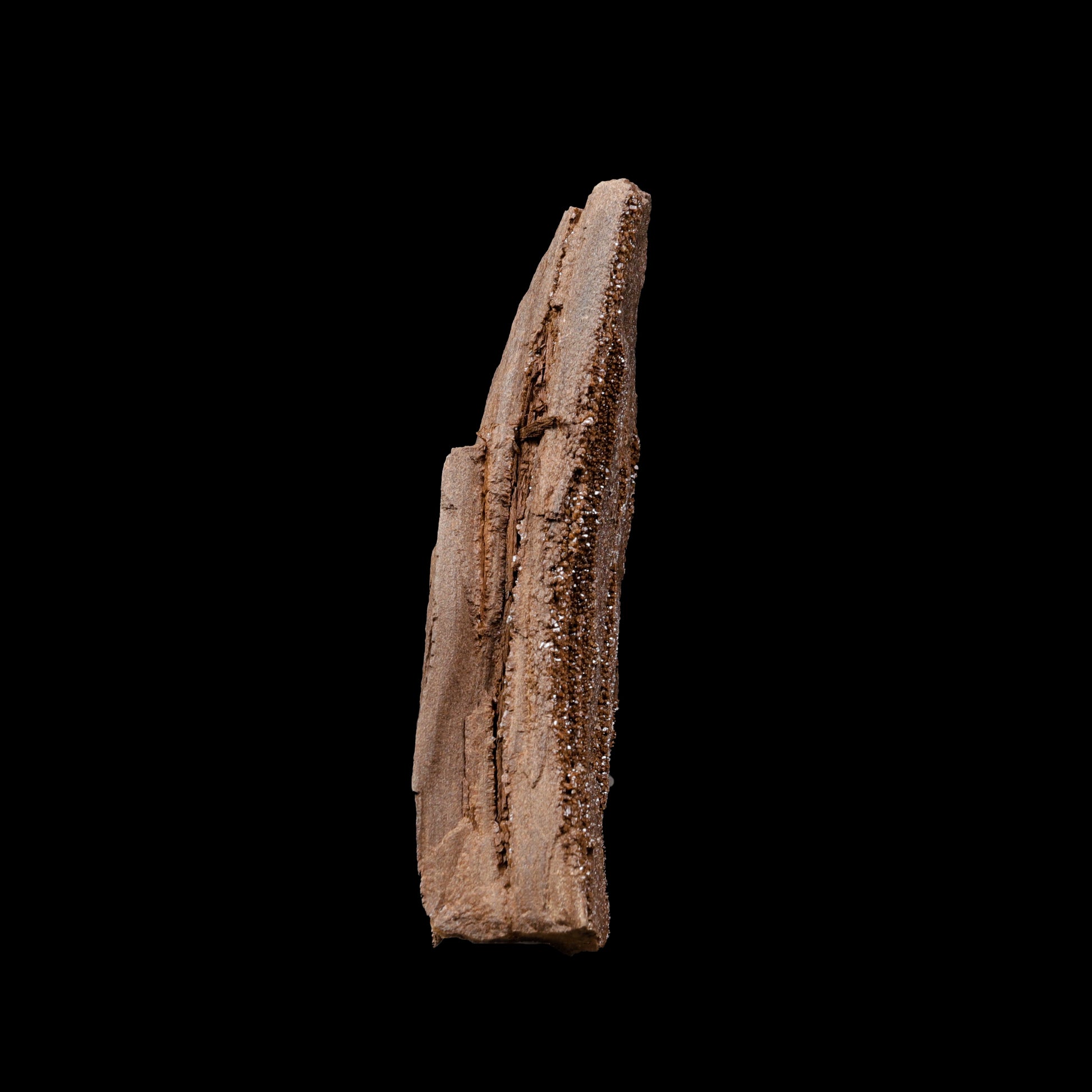 This rare premineralised petrified wood specimen represents a powerful moment frozen in Earth’s history, where ancient wood began transforming into stone over millions of years. Naturally coated with a fine layer of sparkling drusy quartz, the surface shimmers beautifully under light, giving the specimen a raw yet elegant presence. Its tall, sculptural form and untouched natural texture make it a museum-quality mineral specimen, ideal for serious collectors, crystal healers, and luxury interior décor. This piece is not just a fossil—it is a rare geological transition captured in its purest form.