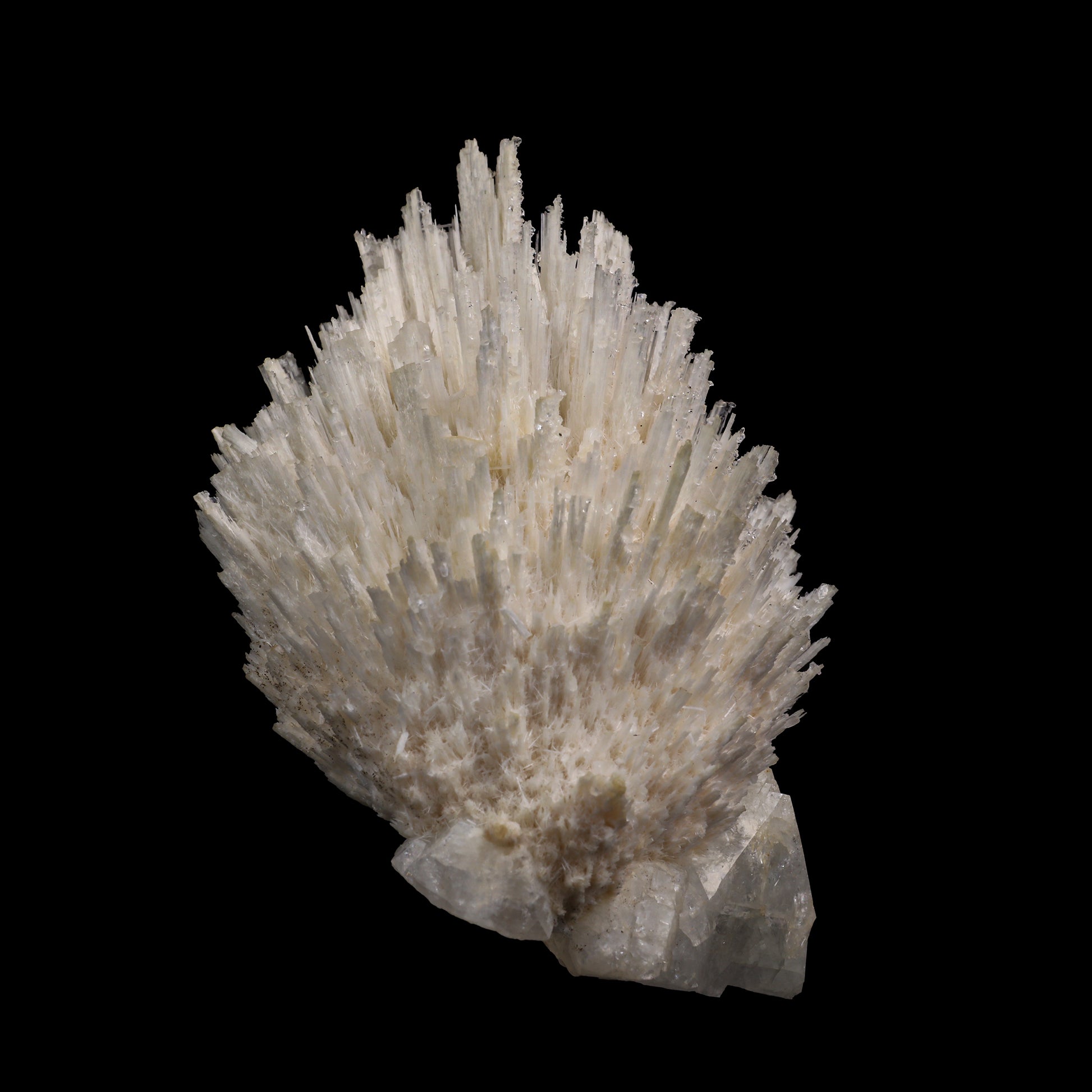 This Scolecite spray with Apophyllite specimen is not merely a stone; it's a symphony of crystals, a masterpiece composed by geological forces over millennia. The delicate, radiating sprays of needle-like Scolecite crystals create a captivating visual dance, while the sparkling Apophyllite crystals add a touch of celestial shimmer. Each crystal, formed over eons, reflects light with a soft, ethereal glow, showcasing the minerals' inherent translucence and glassy luster. This particular specimen, with its rare combination of minerals and distinctive formation, is a prized find, making it a valuable addition to any collection of fine minerals.