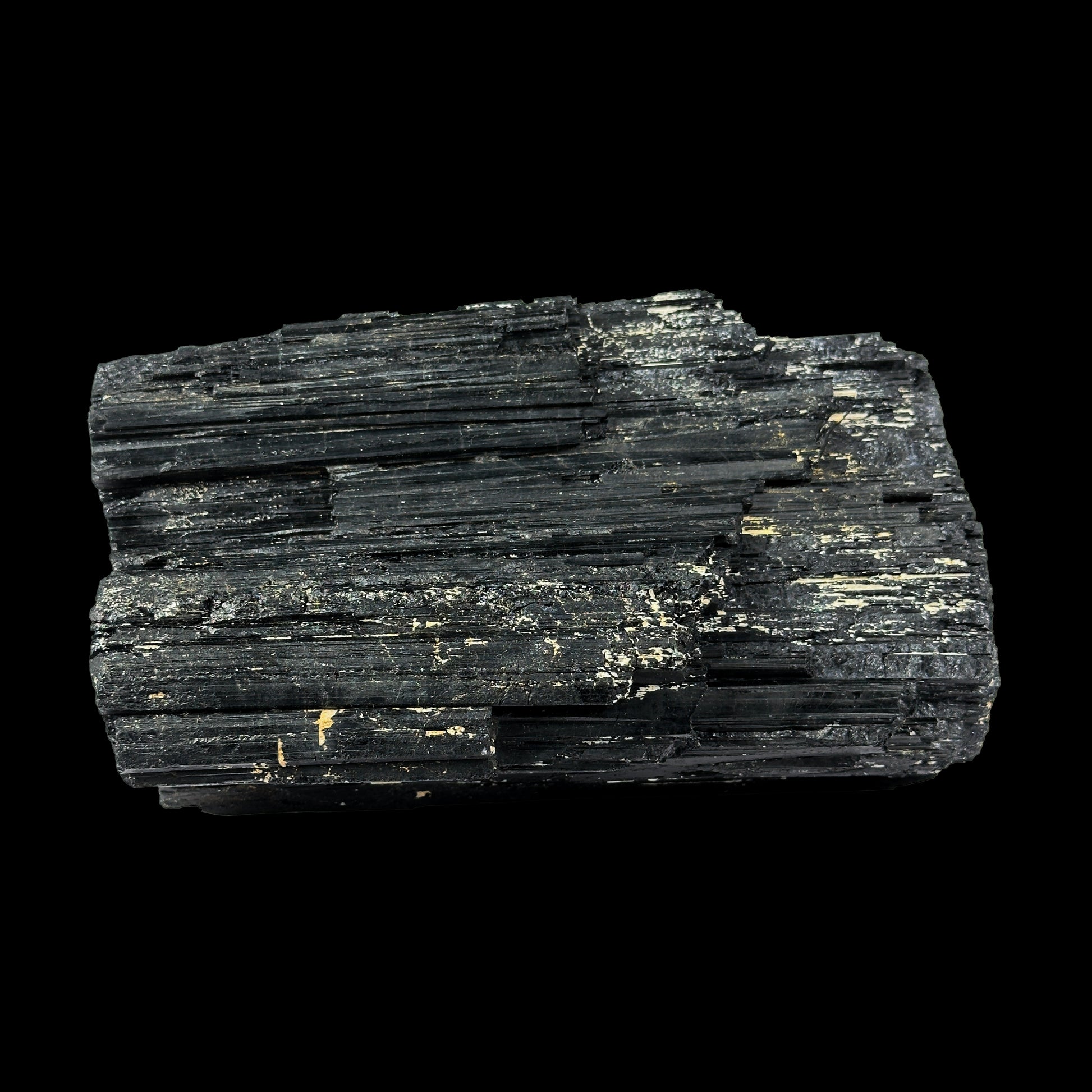 This specimen displays the classic and captivating jet-black color that makes Black Tourmaline globally admired. Its naturally formed vertical striations and rugged crystalline texture reflect raw geological artistry, showcasing subtle natural mineral inclusions that enhance its authenticity and uniqueness. The deep black tone symbolizes protection, strength, and mystery, while its matte to slightly glossy natural luster adds a premium aesthetic appeal. Each ridge and layer tells a story of natural formation over millions of years, ensuring that every piece remains completely unique and one-of-a-kind, making it a rare and valuable addition to any fine mineral or crystal collection.